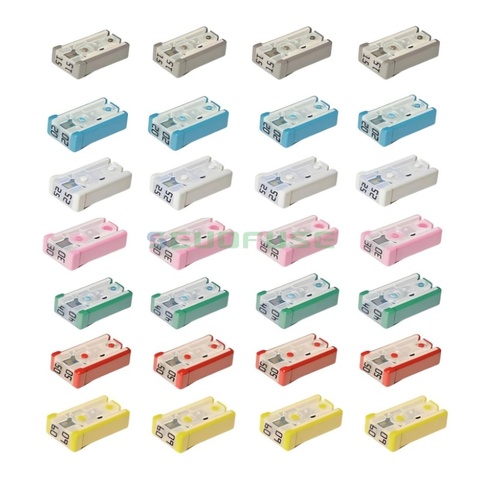 28 Pcs 0695 Serie 15A 20A 25A 30A 40A 50A 60A 32V Mini-Schlitz-MCASE-förmiges Kartuschen-Sicherungs set für Kraftfahrzeuge